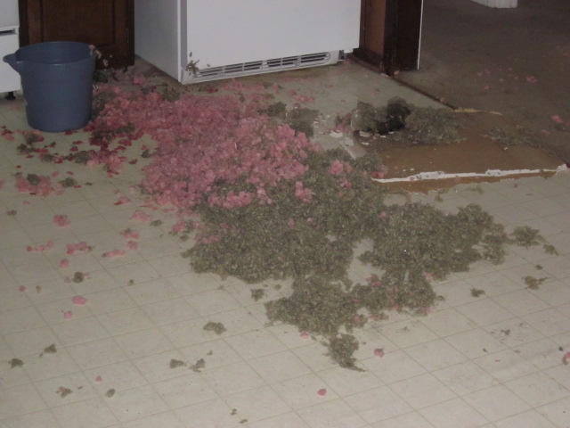 That’s what fell from my ceiling in my kitchen. Yesterday, when the rain started I placed a bucket under the crack. I came back today and found this. I walked around with a rag over my mouth and nose. I can’t breathe that crap in. Who knows what it is.